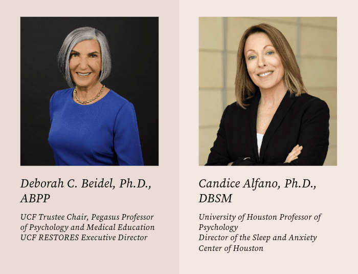 In recognition of National Sleep Awareness Week, we sat down with Deborah C. Beidel, Ph.D., ABPP, Executive Director of UCF RESTORES, and Candice Alfano, Ph.D., DBSM, University of Houston Professor of Psychology and Director of the Sleep and Anxiety Center of Houston, to discuss the profound impact of sleep on trauma recovery, how sleep deprivation manifests differently in adults, first responders, adolescents, and women, and what strategies we can all use to improve our the quality of our sleep.